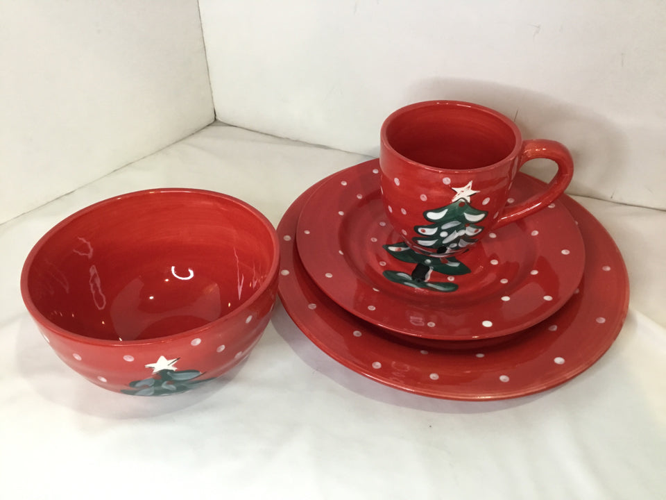 Gibson Dish Set Red & Green Ceramic Christmas Tree Holiday Item