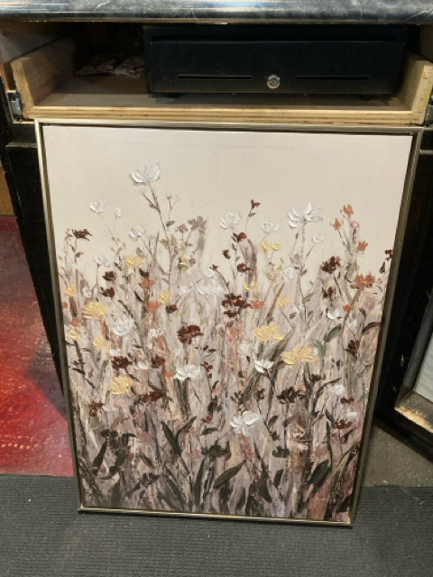 Gray/Multi Canvas Wildflowers Framed Art