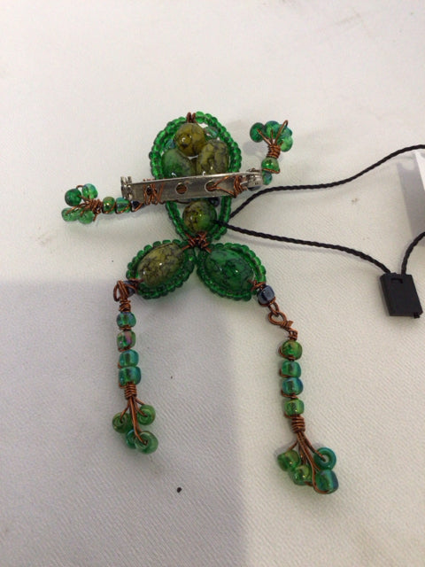 Green Frog Beads Pin