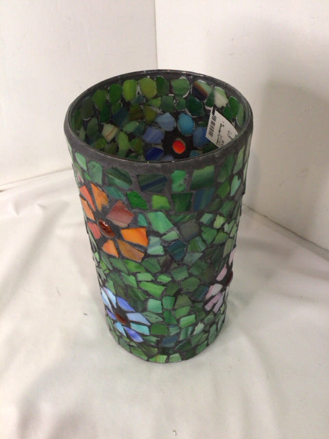 Green/multi Stained Glass Mosaic Flowers Candle Holder