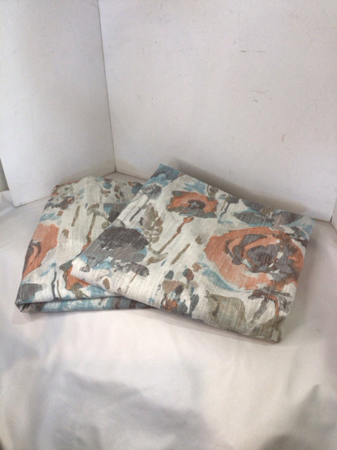 Grommet Cream/Aqua Linen Draperies/Curtains