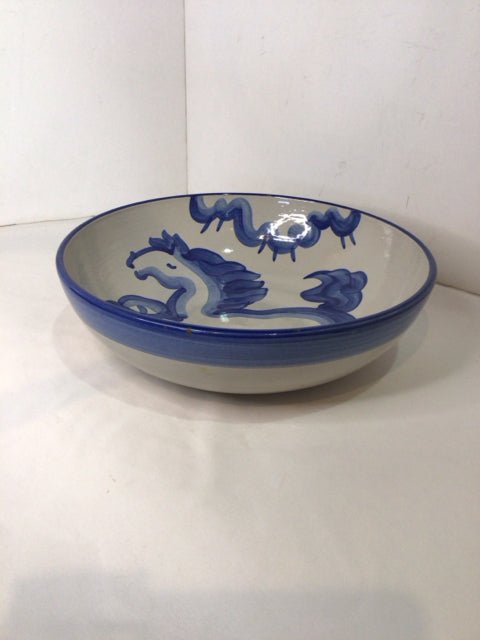 Hadley Blue/White Stoneware Horse Bowl