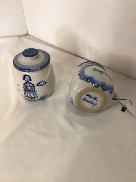 Hadley Set of 2 Blue/White Ceramic Sugar/Creamer