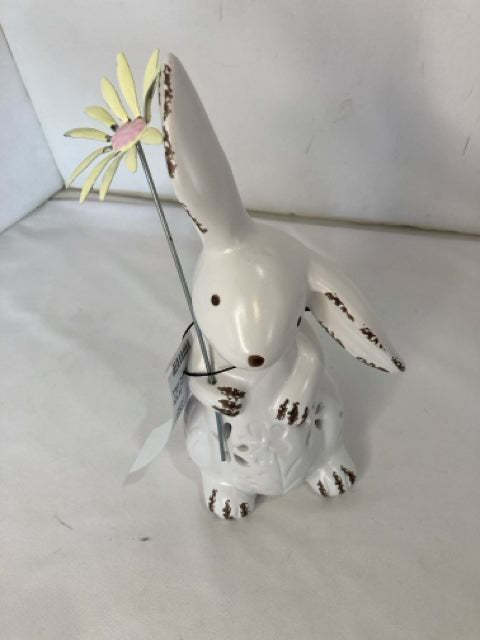 Light White/Yellow Ceramic Bunny Battery Figurine