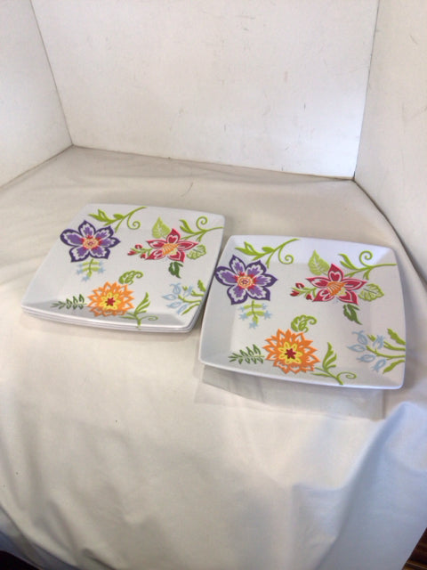 Longaberger Outdoor/Outside White/Multi Melamine Set of 4 Plate Set