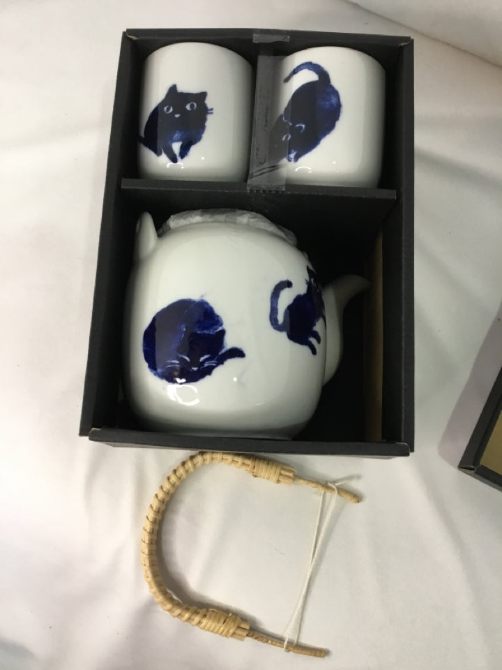 MIYA Oriental White/Blue Ceramic Cat Tea Set