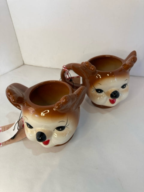 Mug Brown Ceramic Reindeer Pair Holiday Item