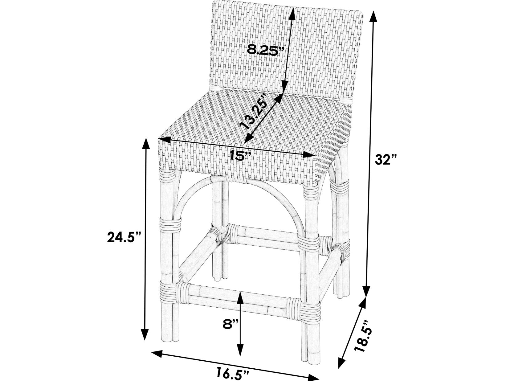 Butler Serienna White black Dot Natural Rattan Frame Counter Stool CQN5FFXL Length: 19" Width: 17"...