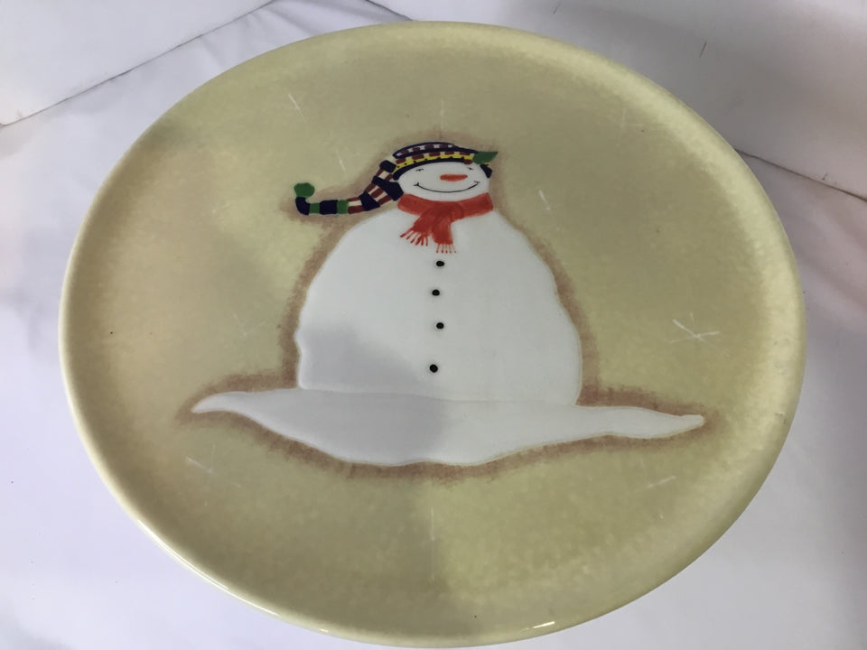 Oneida Cake Plate White/Multi Ceramic Snowmen Holiday Item