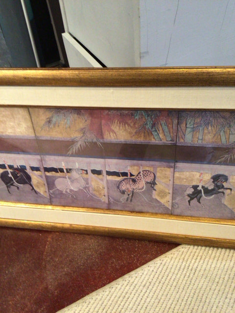 Oriental Gold/Multi Horses Framed Art