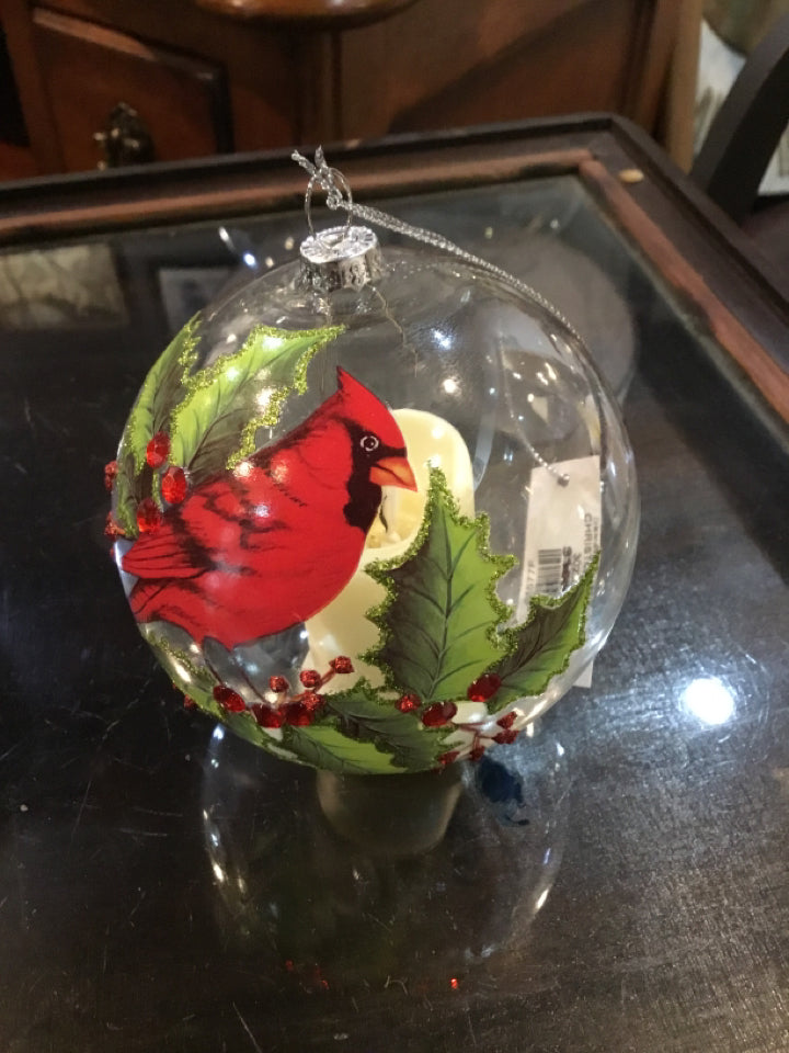 Ornament Clear/Red Glass Cardinal Holiday Item