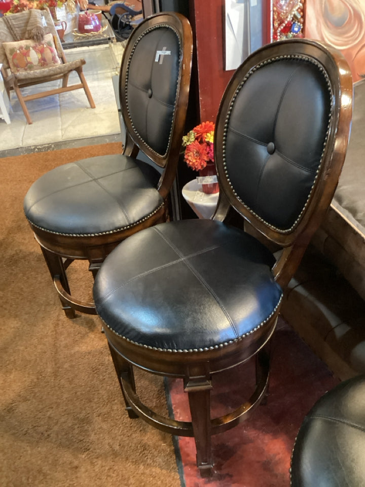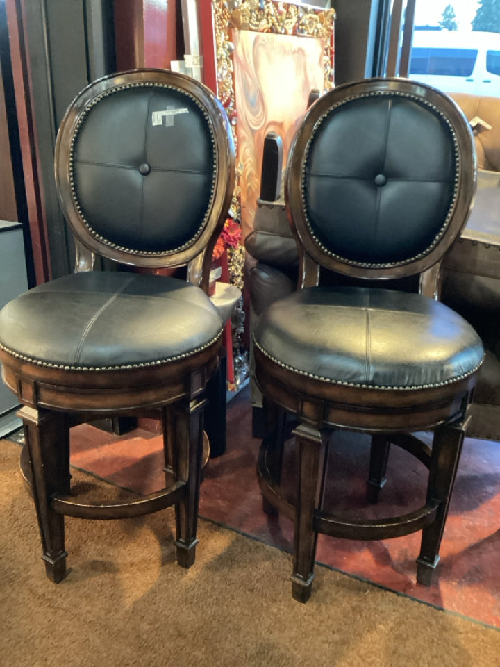 Pair Leather Shield Back Bar Black/Brown Barstool/Bar Stool