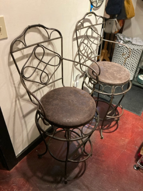 Pair Metal/Leather Brown Barstool/Bar Stool