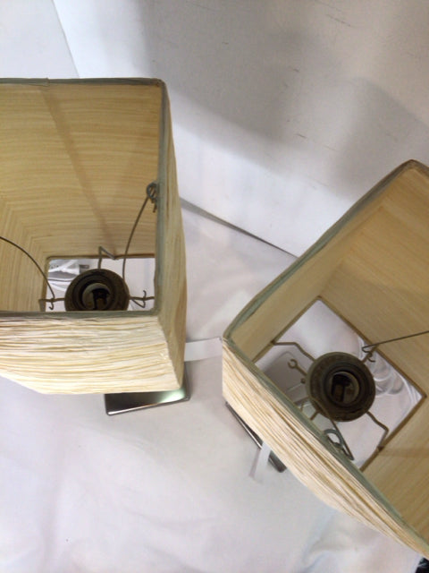 Pair Silver/Cream Metal Paper Lamp Set