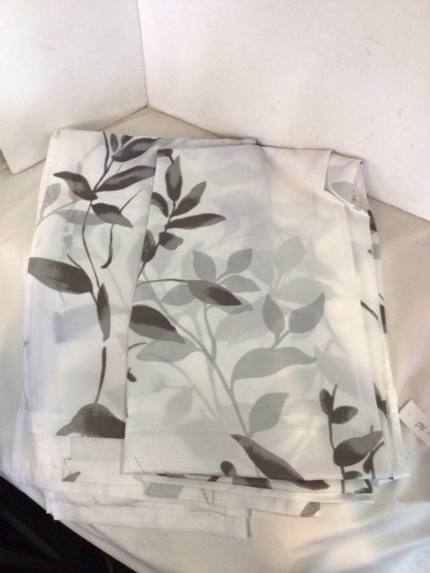 Pair White/Brown Poly Blend Floral Draperies/Curtains