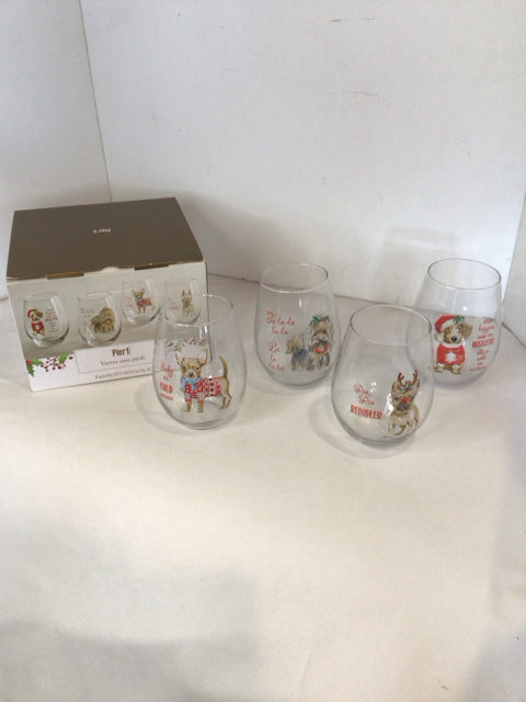 PIER 1 Christmas Clear/Multi Glass Glasses Set of 4 Holiday Item