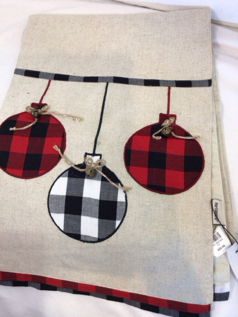 PIER 1 Christmas Red/Black Cotton Table runner Ornaments Holiday Item