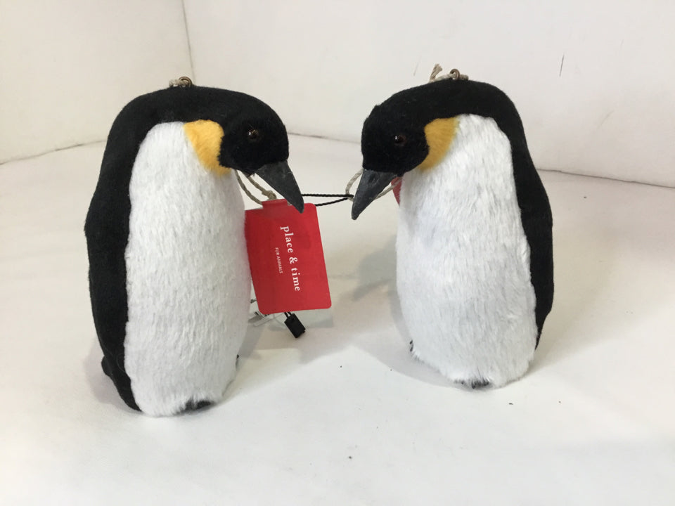 Place & Time Ornament Black/White Faux Fur Penguin Pair Holiday Item