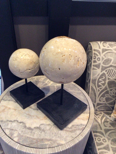 Pottery Barn Sphere Black/Cream Stone Pair Sculpture