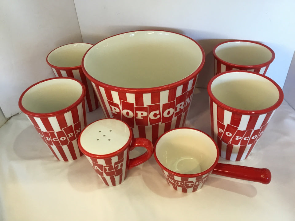 Red/white Ceramic 7 pieces Popcorn Bucket