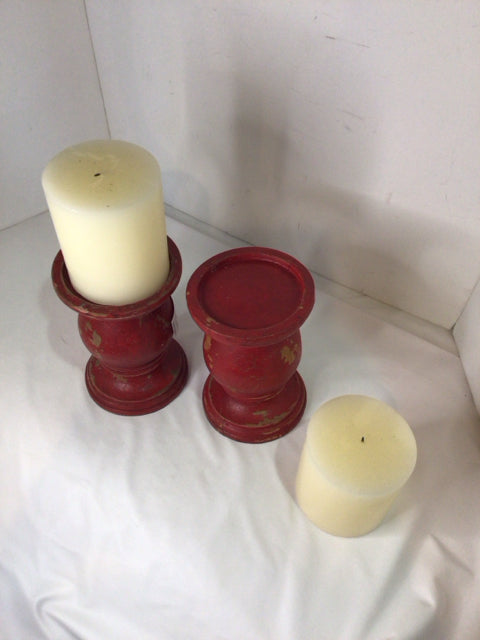 Rustic Pair Red w/candles Candle Holders