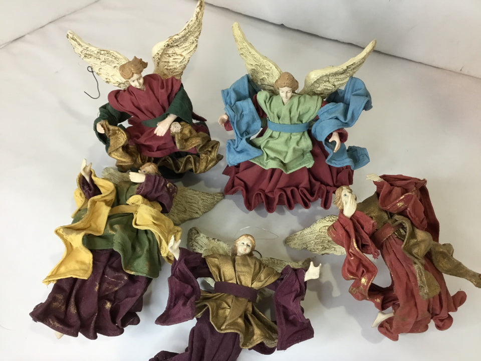 Set of 5 Multi-Color Paper Mache Angels Ornaments Holiday Item