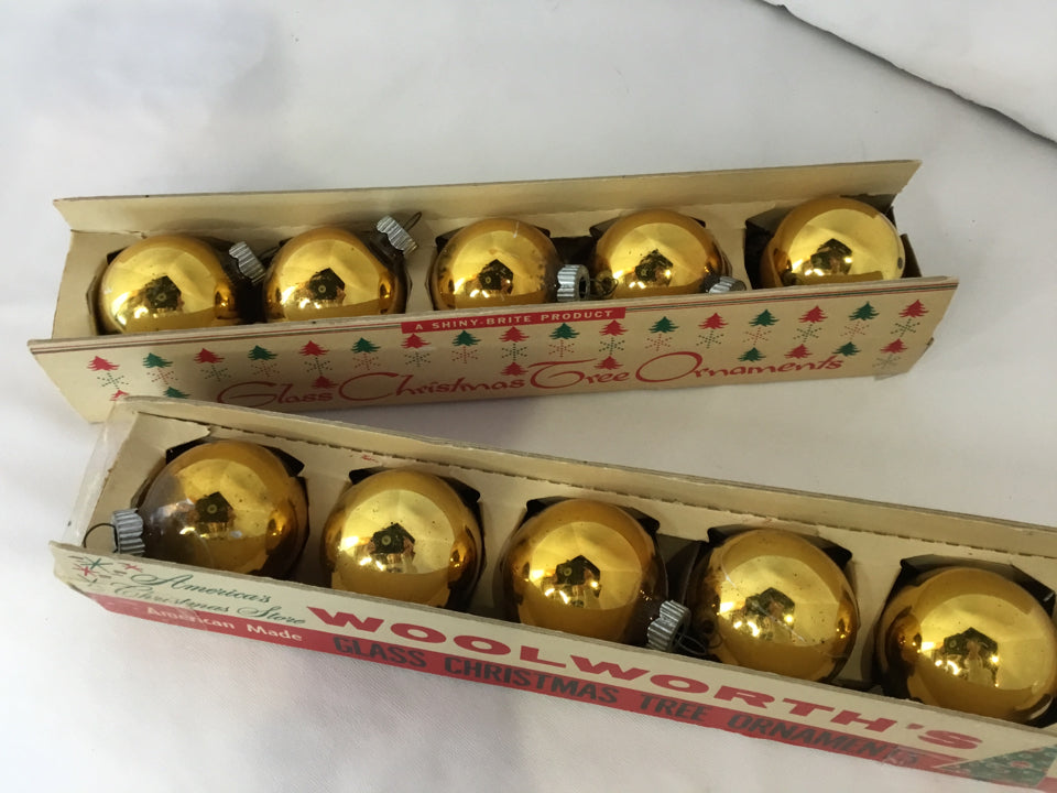 Shiny Brite Christmas Gold Glass Ornaments Set of 10 Holiday Item