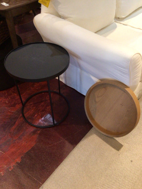 Side Metal/Wood Round Black/Tan Table