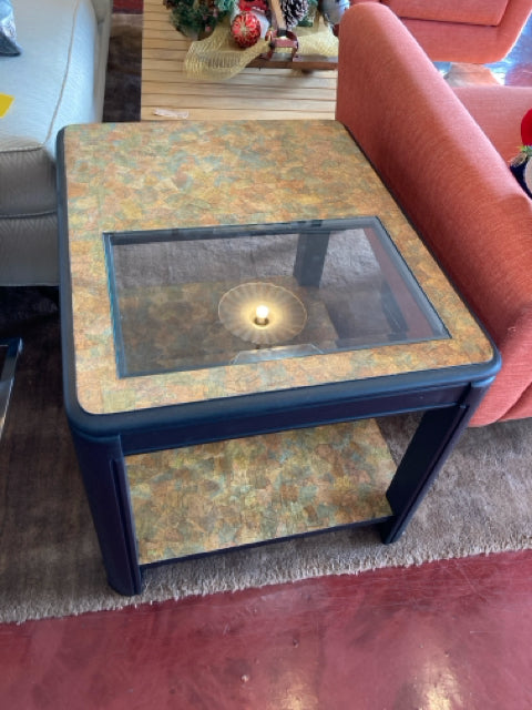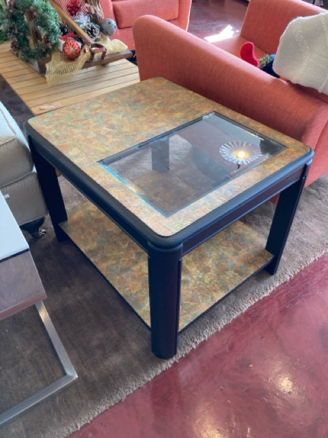 Side Wood/Glass Map Black/Multi Table