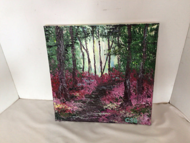 Signed Multi-Color Acrylic Trees Woods Stretch Canvas Art