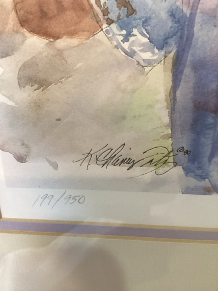 Signed Print Multi-Color Woman Framed Art