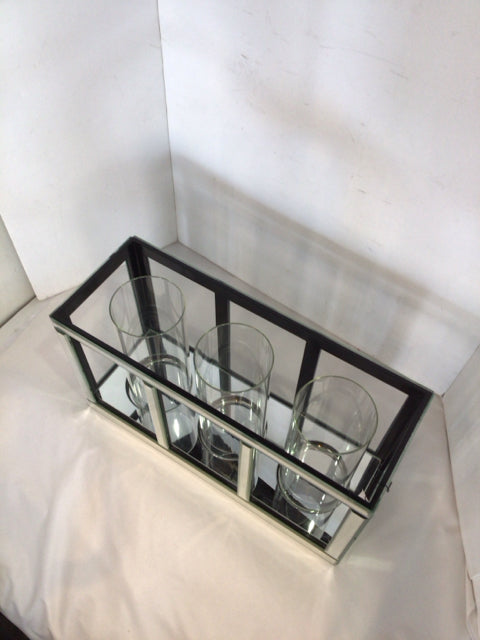Silver Metal/Glass 3 piece set Mirror Candle Holder