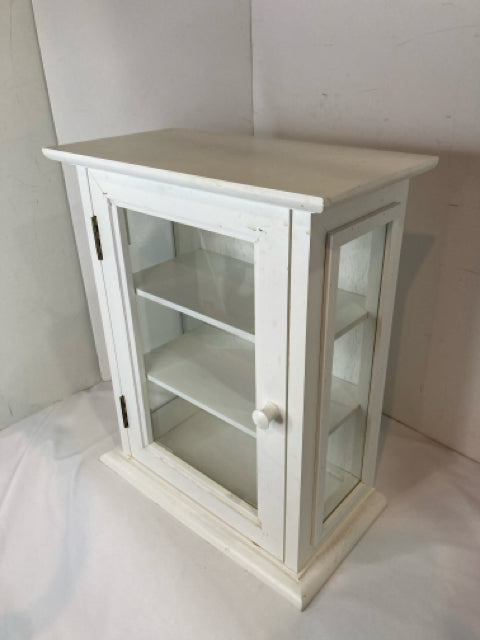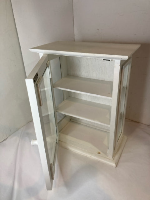 Small White Wood/Glass 3 Shelf Cabinet