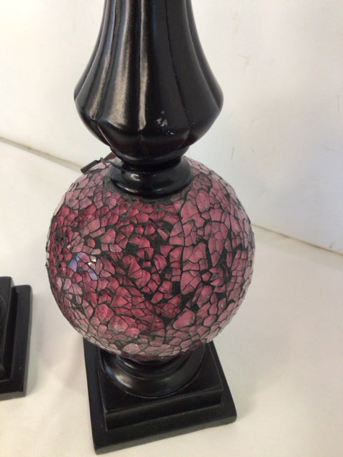 Sphere Black/Pink Wood Mosaic Pair Statue