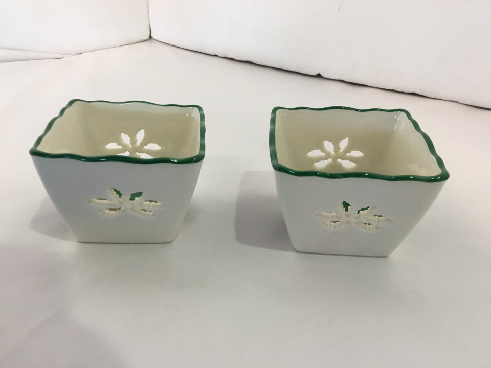 Spode Christmas Green/White Ceramic Candle Holder Pair Holiday Item