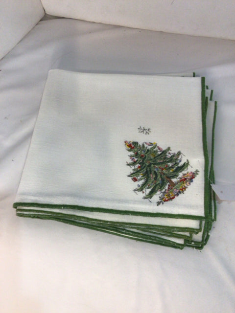 Spode White/Green Christmas Tree Set of 8 Napkins