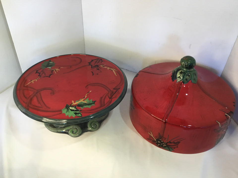 Tracy Porter Cake Stand/Dome Red/Green Ceramic Holiday Item