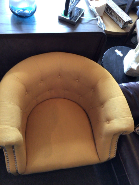 Upholstered Tufted Nail Head Trim Yellow Chair