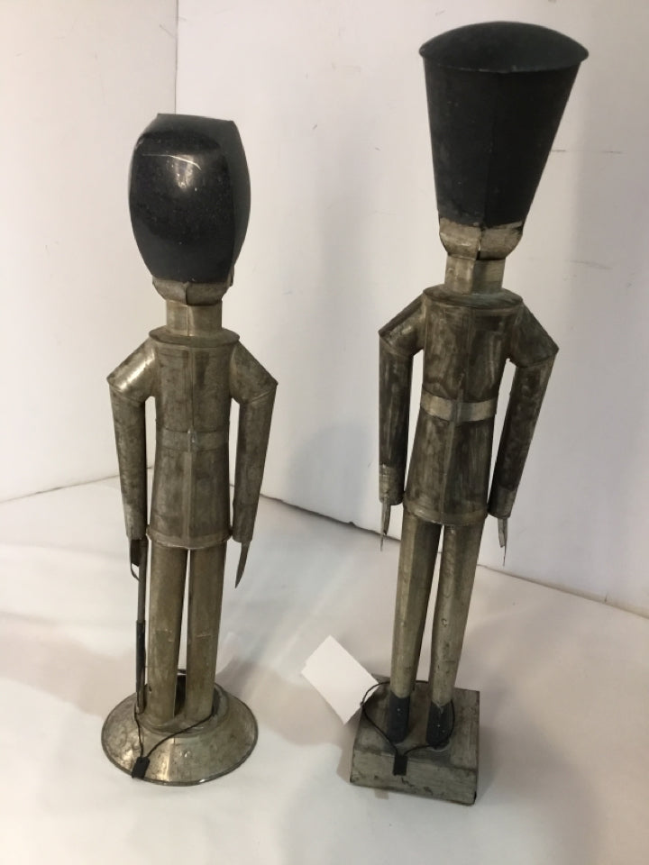 Vintage Pair Gray/Black Tin Soldiers Sculpture