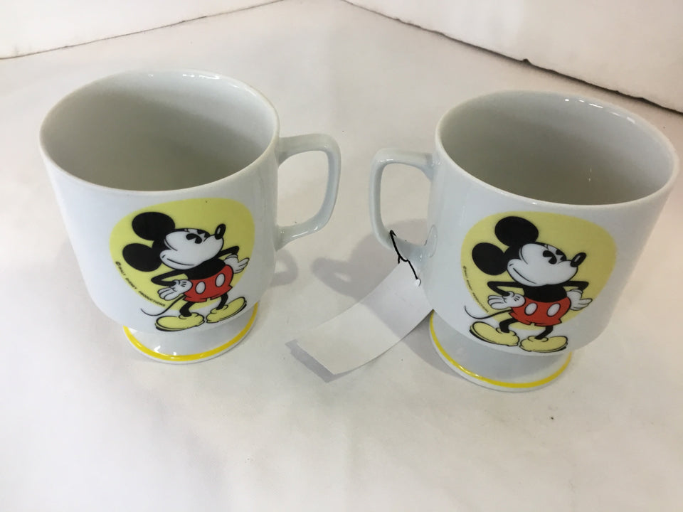 Vintage Pair White/Multi Ceramic Mickey Mouse Mug