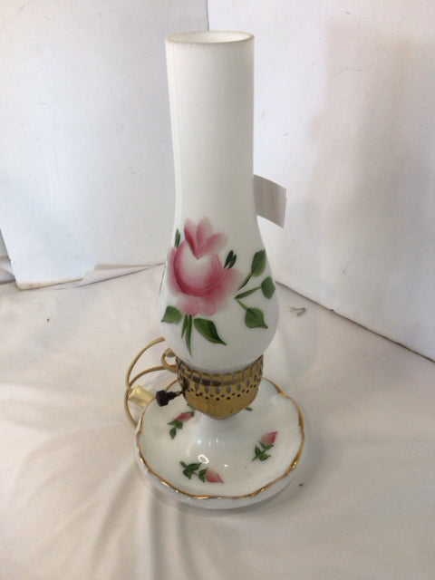 Vintage White/Pink Glass Roses Hurricane Lamp