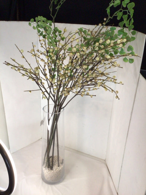 White/Green Glass In Jar Faux Flowers