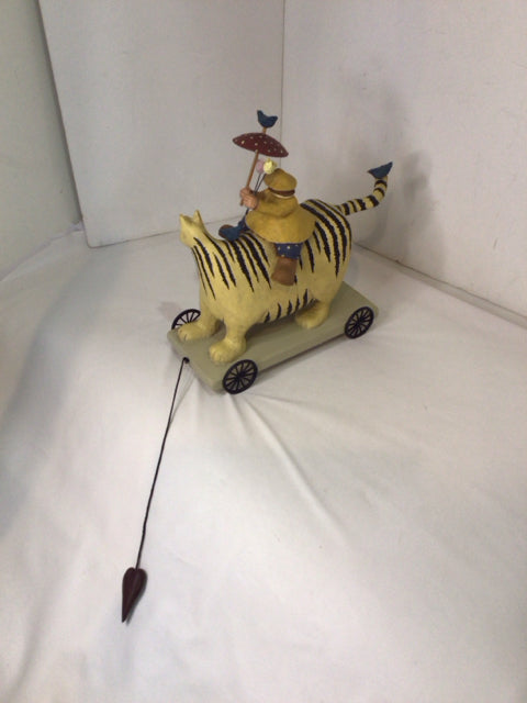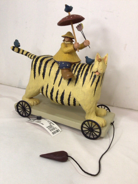 Williraye Studio Whimsical Tan/Black Resin Girl Cat Statue