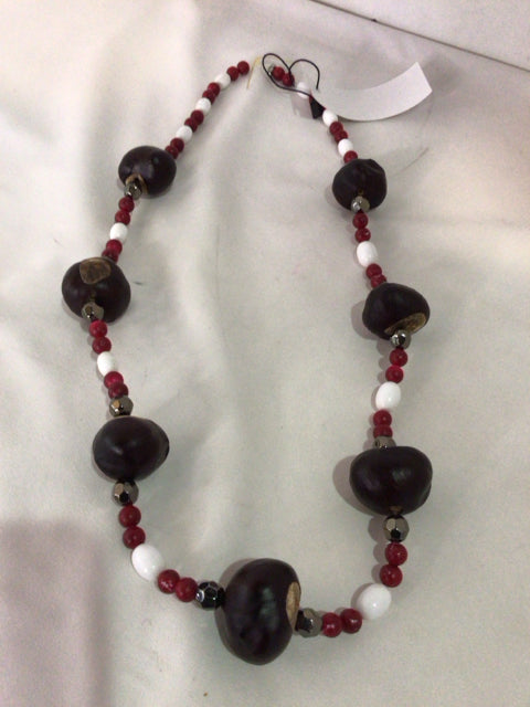 Wood Brown/Red Beaded Necklace