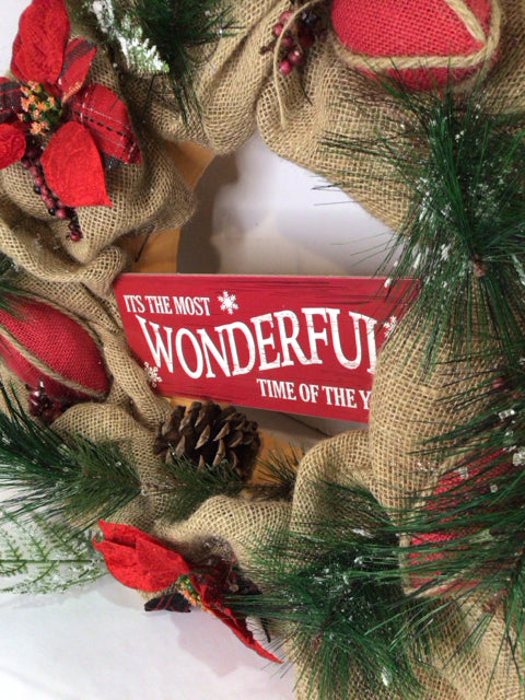 Length: 0" Width: 24" Height: 0" Style = Wreath Color = Green/Red Pattern = Ornaments...
