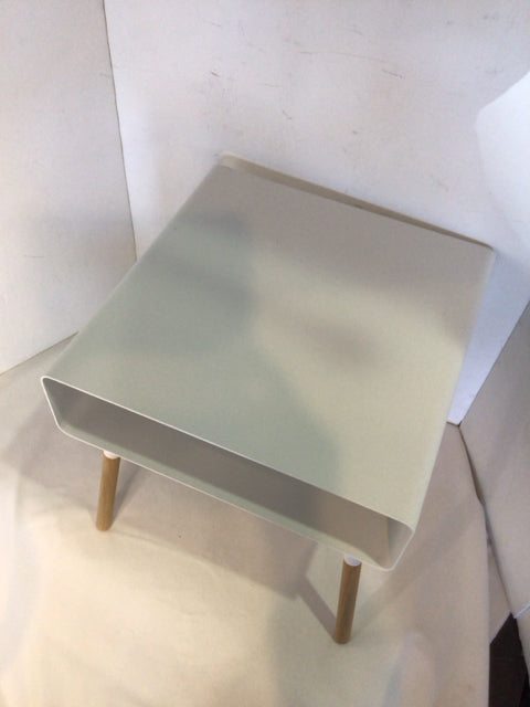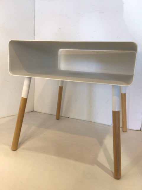 Yamazaki Side Metal/Wood Storage White Table
